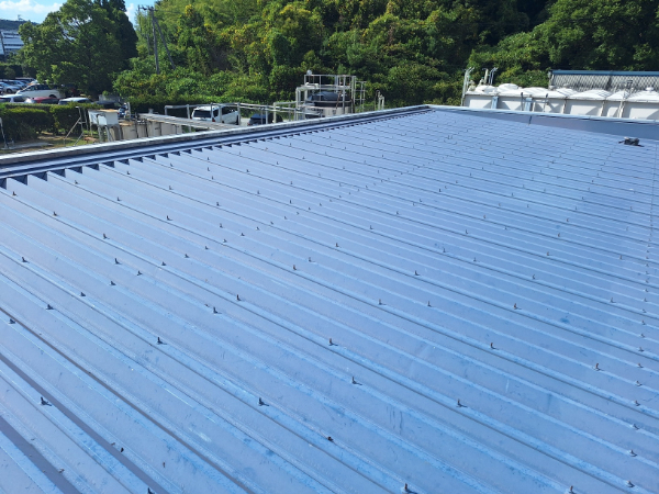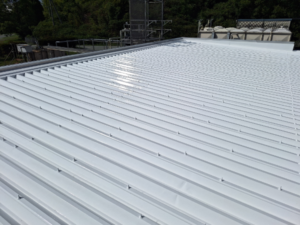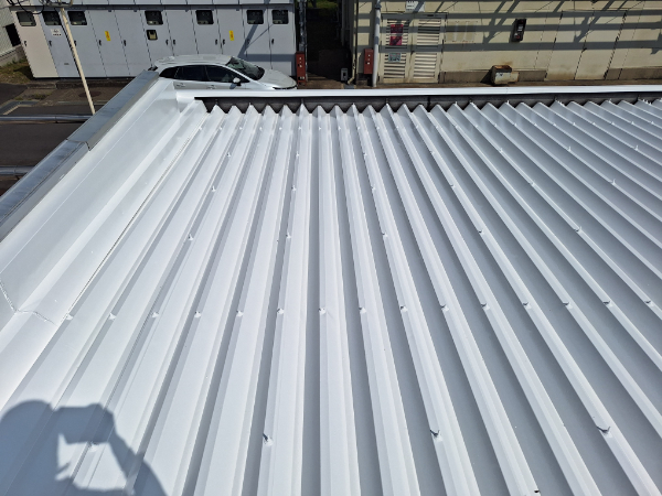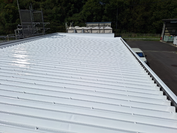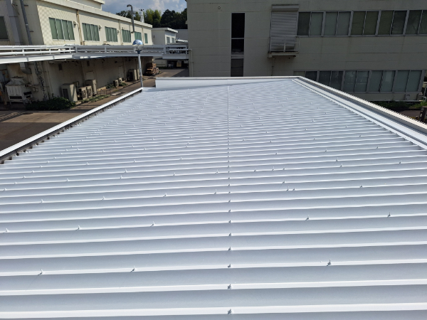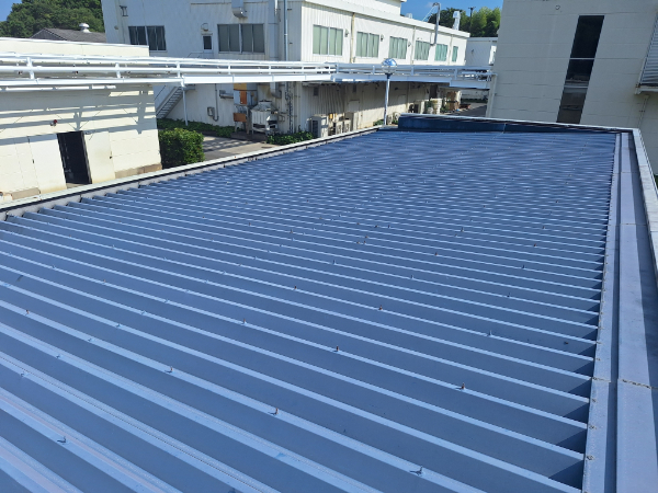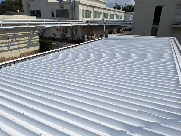 この度、津工場様の保守管理棟屋根に、高日射反射率遮熱塗料「クールアップ」を塗装させていただきました。