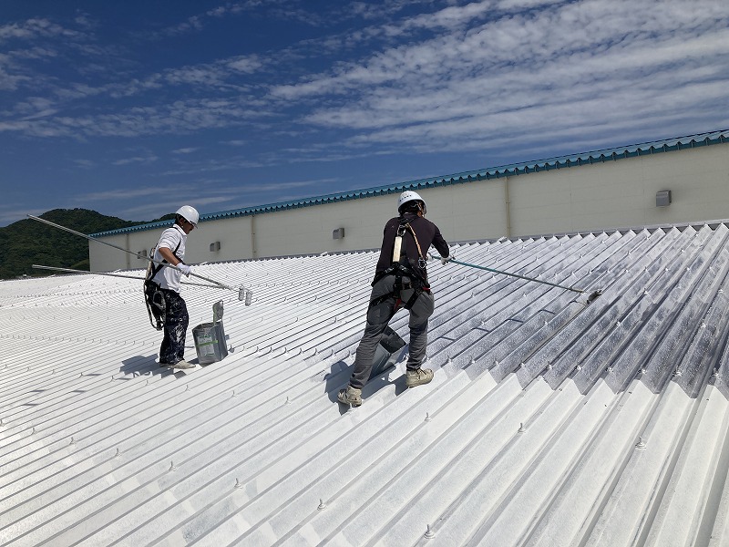 この度は阿南事業所の工場屋根に長期耐久性塗料「ダイコート」を施工させていただきました。