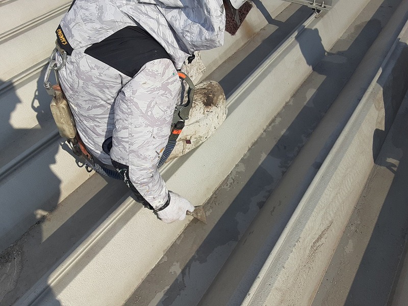 京都府にあるK社様の工場屋根に、長期耐久性塗料「ダイコート」と遮熱・断熱塗料「クールサーム」を施工させていただきました。