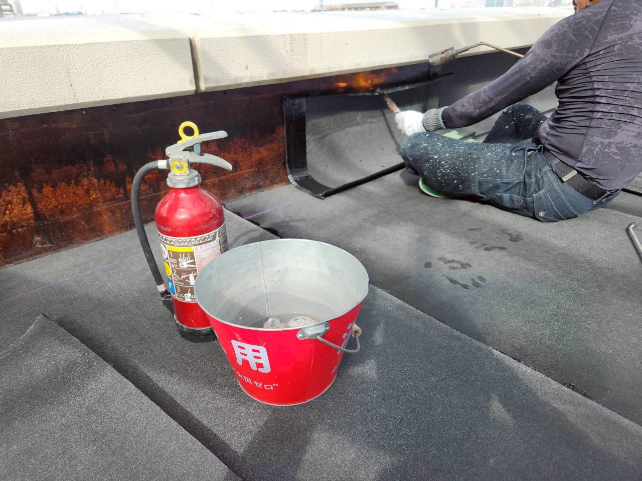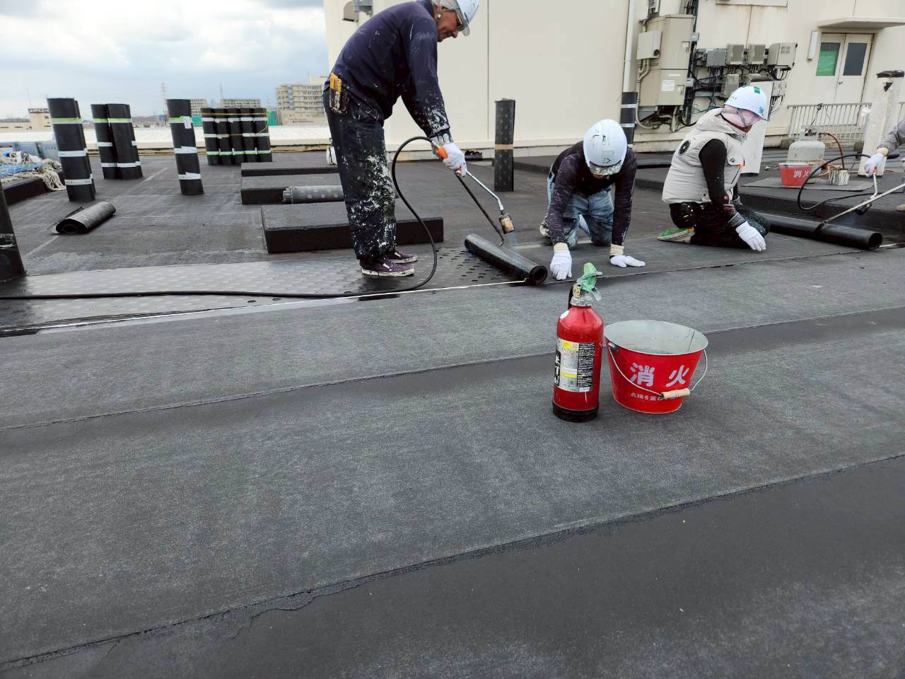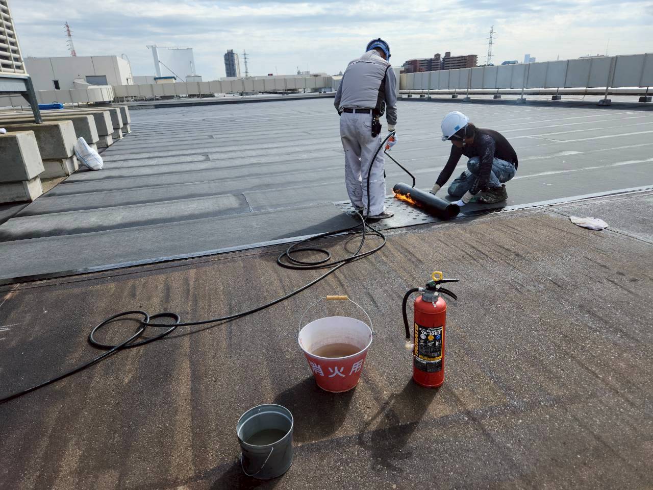 この度、鶴見工場様の屋上に、改質アスファルト・トーチ⼯法防⽔ルーフィング材「ラムコシートDuO」を施工させていただきました。