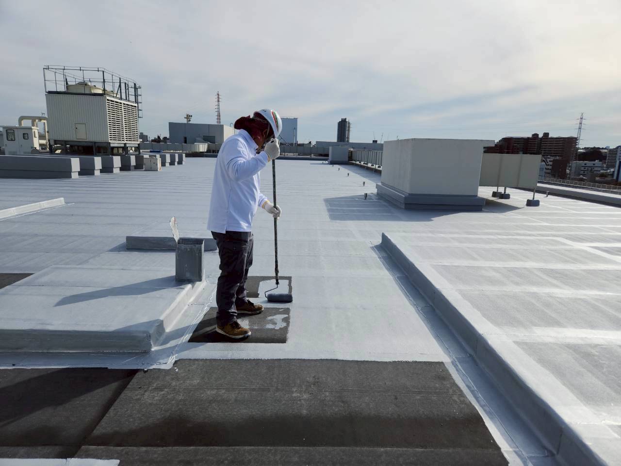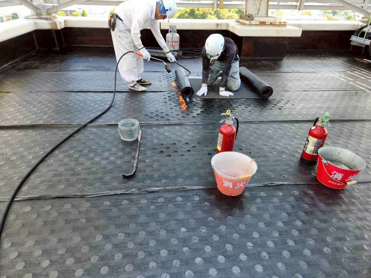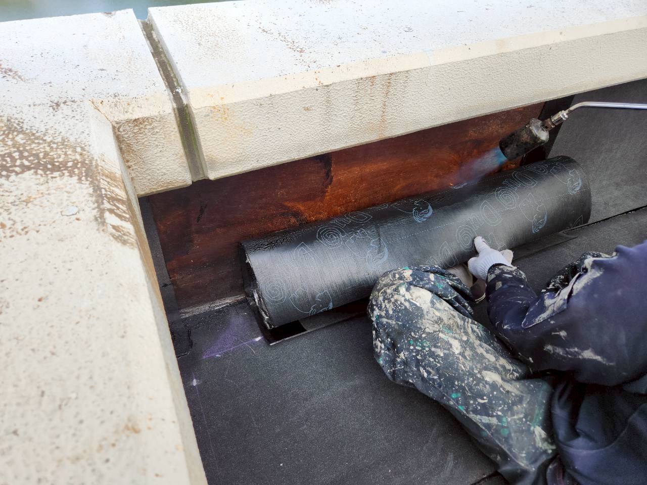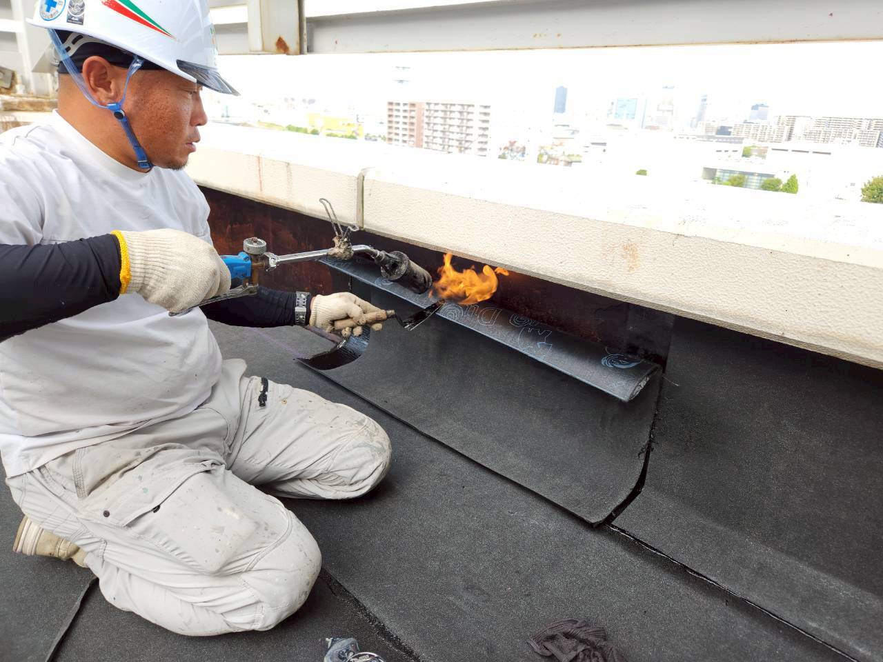 この度、鶴見工場様の屋上に、改質アスファルト・トーチ⼯法防⽔ルーフィング材「ラムコシートDuO」を施工させていただきました。
